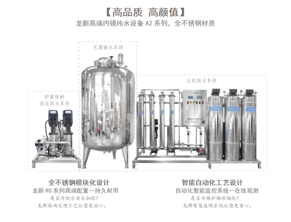 內鏡清洗純水設備A1系列原水水質是市政自來水、水質指標符合GB/5749生活飲用水衛生標準;產水電導率<15us/cm,水質符合《軟式內鏡清洗消毒技術規范》WS507-2016用水指標軟式內..